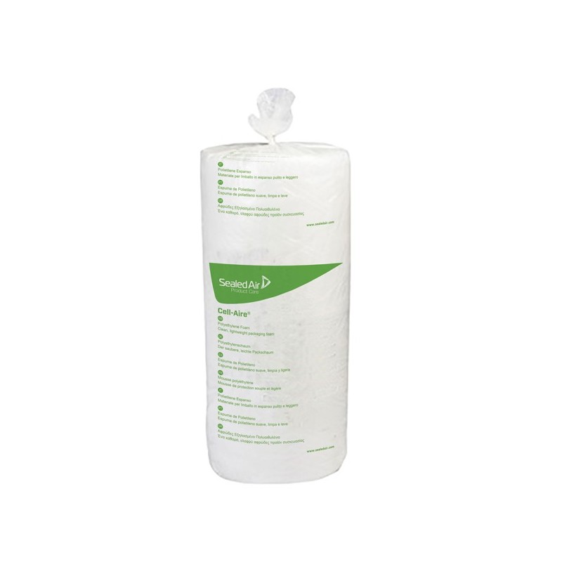 Film in schiuma di polietilene CELL AIRE®. Materiale protettivo per imballaggio, economico, pratico e adatto all'isolamento termico e contro l'umidità. Completamente riciclabile e riutilizzabile. Rotolo Rotolo 100cm x 25mt. Spessore 2mm.
