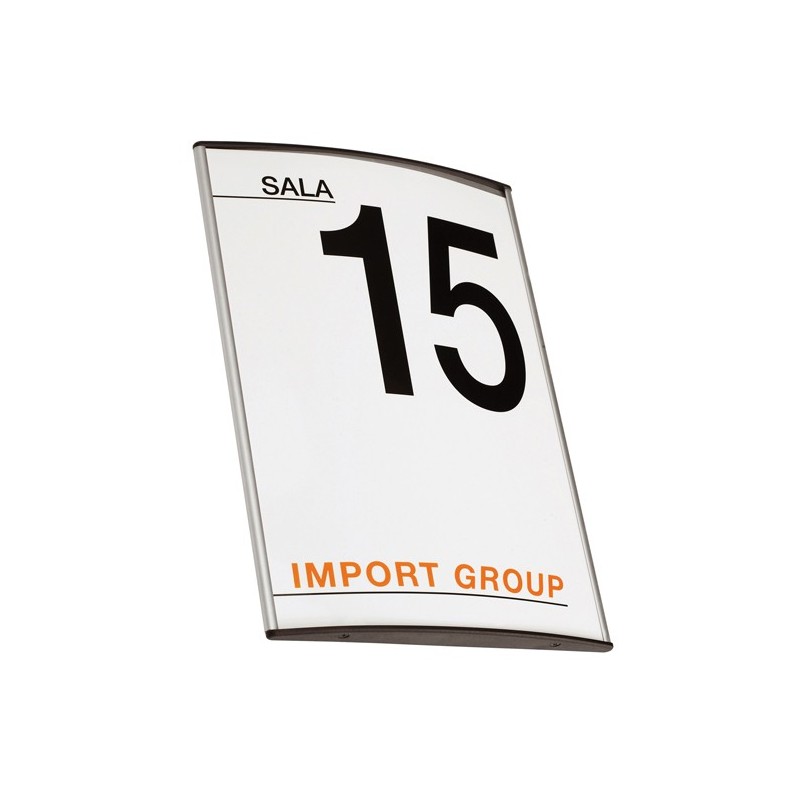 Elegante design dalla forma convessa. Realizzato in alluminio estruso e corredato di appositi terminali di chiusura in materiale plastico nero. protezione in pvc antiriflesso. Puo' essere utilizzato sia in verticale che orizzontale. Infinite le combinazioni possibili. La grafica e i messaggi da inserire sono realizzati dall'utente stesso in carta o cartoncino, mediante l'uso del pc, in totale autonomia. Si ottengono in questo modo notevoli risparmi gestionali rispetto ai sistemi segnaletici usati fino a ora