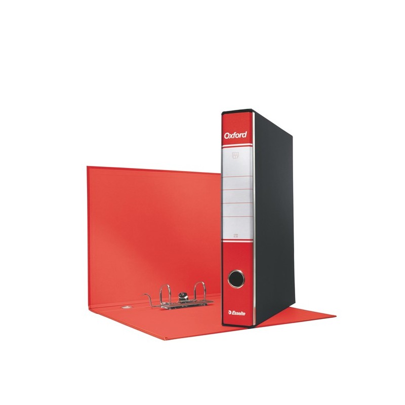 Registratore con struttura in cartone (spessore 2 mm) rivestito in carta goffrata. Rivestimento interno di colore pendant con la superficie esterna.