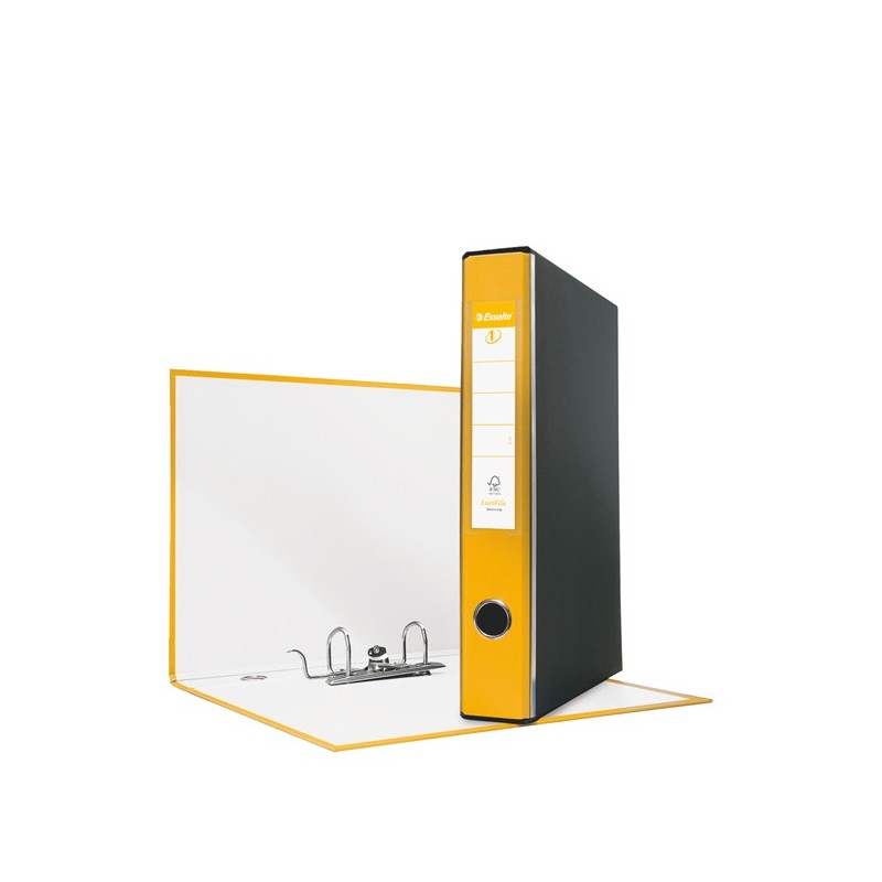 Registratore in robusto cartone da 2 mm, rivestito sia internamente che esternamente in polipropilene incollato su entrambi i lati. Dotato di ampia etichetta scrivibile su entrambi i lati e di portaetichetta saldato sul dorso.