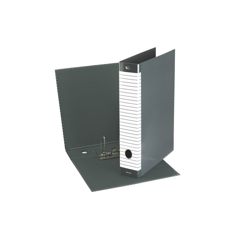 Registratore con ampio dorso riscrivibile per la massima personalizzazione. Robusta struttura in cartone (spessore 2 mm) rivestita in carta stampata e plastificata. Dotato di foro per l'estrazione e meccanismo a leva con 2 anelli. Resistente custodia da 0.9 mm in fibrone con bordi metallici rinforzati.