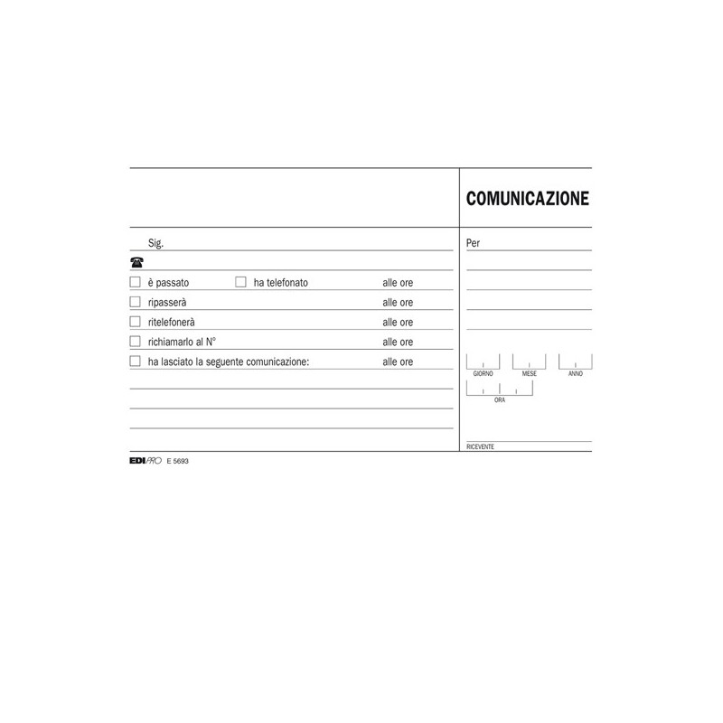 BLOCCO COMUNICAZIONI TELEFONICHE. Formato 10x17cm. 100 fg.