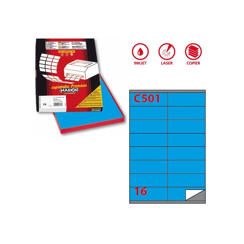 Scatola da 100 fogli di etichette in carta adesiva permanente in formato 21x29,7cm adatti per fotocopiatrici, stampanti laser, inkjet.