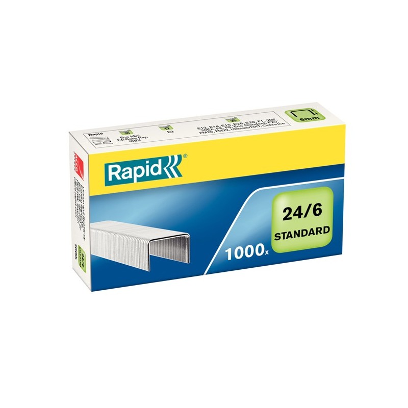 Punto in metallo zincato per cucitrici R1 - R15 - R12/30 - R12/40 - R12. Capacità 2-20fogli. Confezione da 20 scatole.