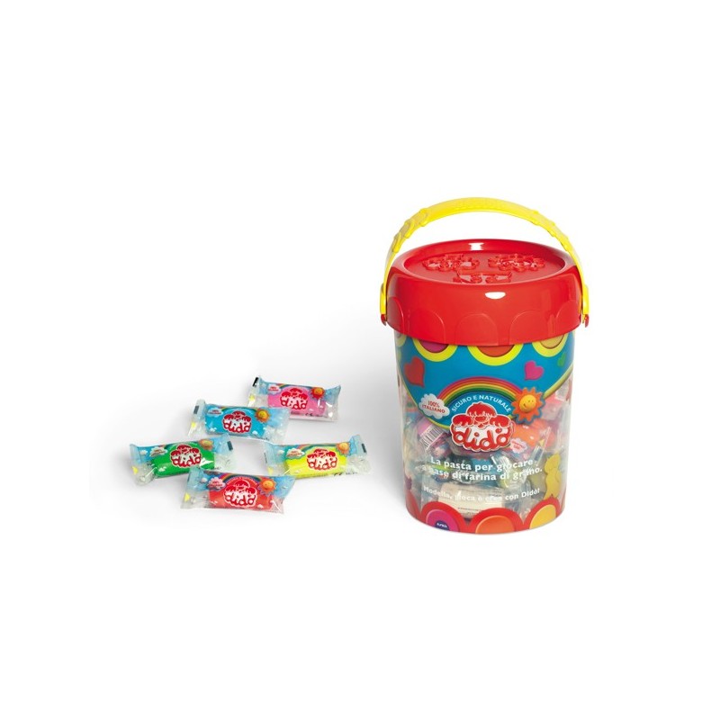 PASTA PER GIOCARE MORBIDA,FATTA CON INGREDIENTI NATURALI. È INNOCUA E NON MACCHIA. Vaso espositore con coperchio a pressione e maniglia, studiato per la vendita dei salsicciotti sfusi. L’imballo contiene al suo interno 1 vaso con 50 salsicciotti ed una ricarica con altrettanti salsicciotti. I colori contenuti sono: 12 giallo, 8 x bianco, verde, rosa, azzurro, magenta, rosso, verde fluo, azzurro fluo, arancione, viola, nero.