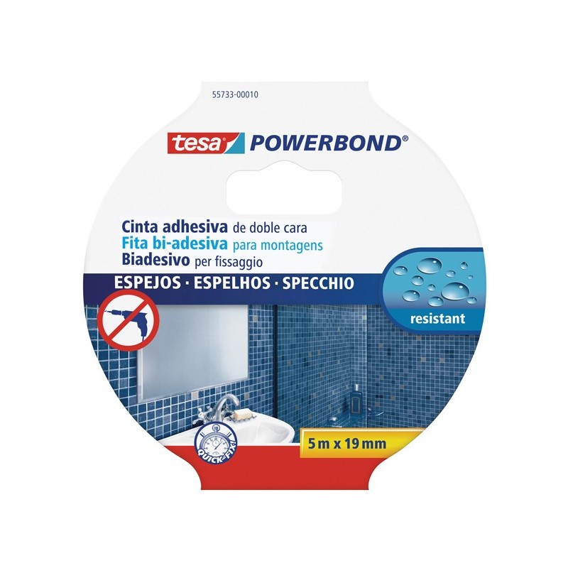 Nastro biadesivo con forte tenuta. EÆ stato studiato specificamente per fi ssare piccoli oggetti. Resistente allÆumiditÓ. Sostiene specchi massimo 70x70cm - 4mm di spessore.