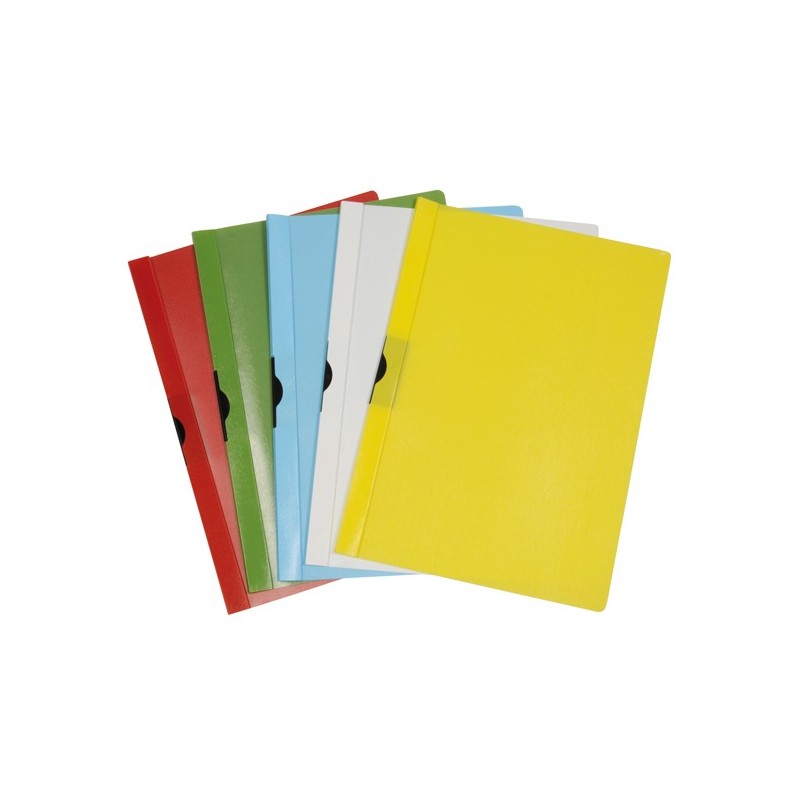Cartelle in PPL con molla in acciaio. Formato utile: 22x31cm. Color assortito. Dorso 5mm. Confezione da 25.