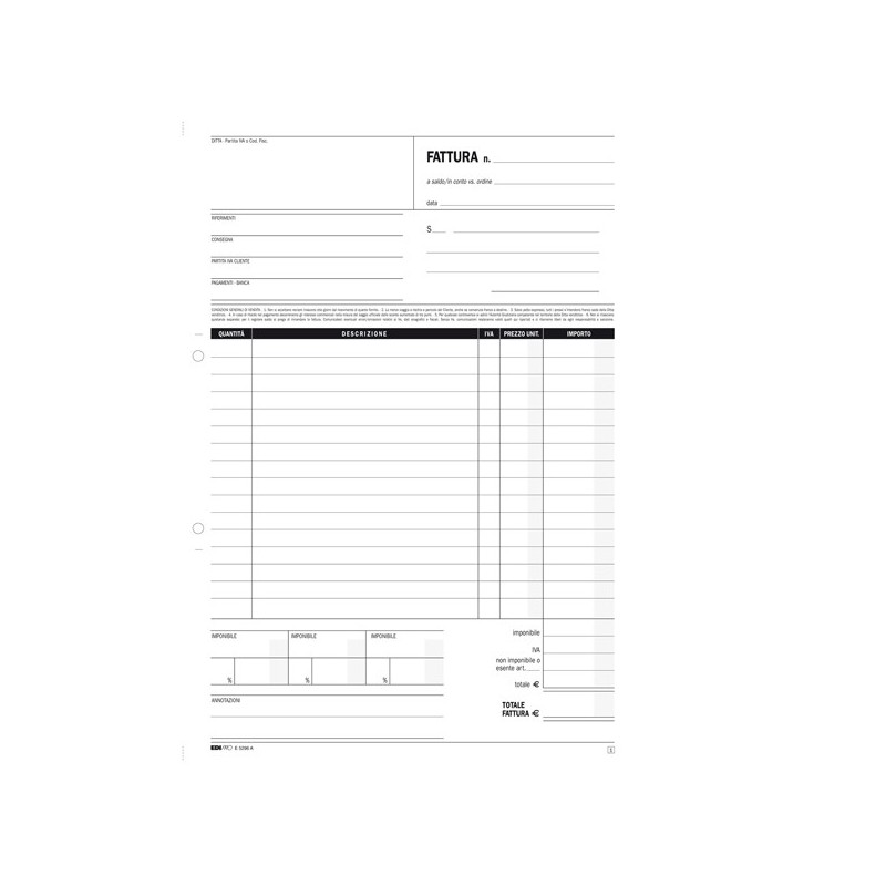 BLOCCO FATTURA GENERICA. Formato 29,7 x 21cm. 50 fogli. 2 copie ric.