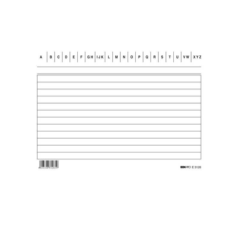 100 schede in cartoncino da 170gr. Formato 10,5 x 15cm orizzontale. Rigate.