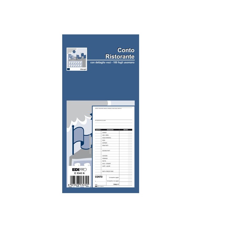 BLOCCO CONTO RISTORANTE C/VOCI. Formato 22x10cm. 100 fg. Uso mano.