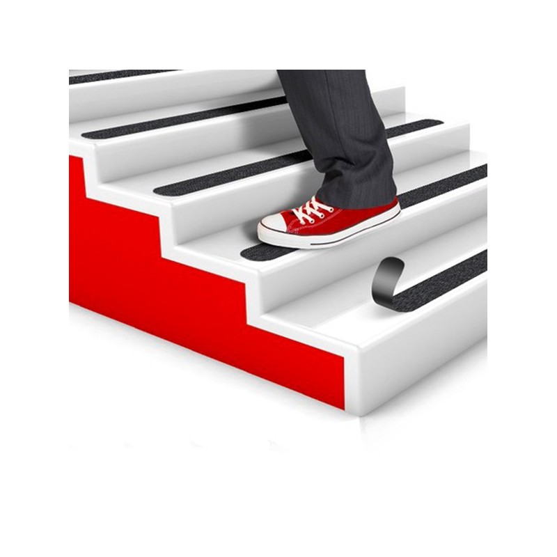 Strisce adesive antiscivolo di colore nero per interni ed esterni per prevenire il rischio cadute, conformi al dlg 626/92. Pellicola autoadesiva ad alta tenuta cosparsa di granuli abrasivi. Indicato per scale, rampe piattaforme, ecc. Per l'applicazione seguire attentamente le istruzioni.
