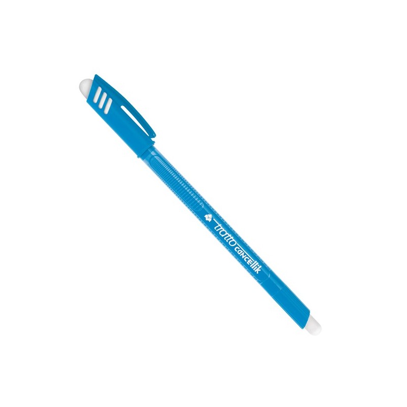 Inchiostro permanente dopo 24h. Cappuccio anti soffocamento. Spazio per la personalizzazione. Fusto e cappuccio nel colore dell'inchiostro. La penna è dotata di doppia gomma : sul fusto e sul cappuccio. Punta 1,0mm. Colore: azzurro.