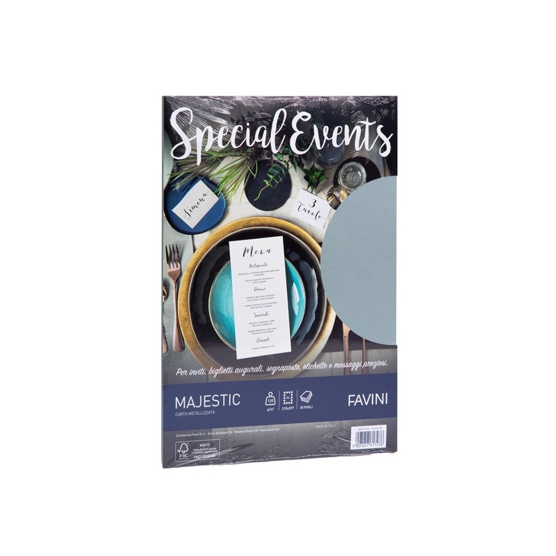 Carta da 120gr metallizzata Majestic Favini dai riflessi brillanti e pregiati. Utilizzabili per scrittura manuale, inkjet, laser e copy. Formato 21x29,7cm.