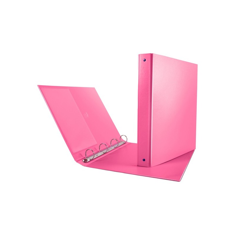Raccoglitori in Stratopan®-P (cartone interamente rivestito in PP) con meccanismo a 4 anelli tondi da 30mm e tasca interna. Formato esterno: 275x320mm. Formato contenuto: 220x300mm(A4). Dorso 35mm.