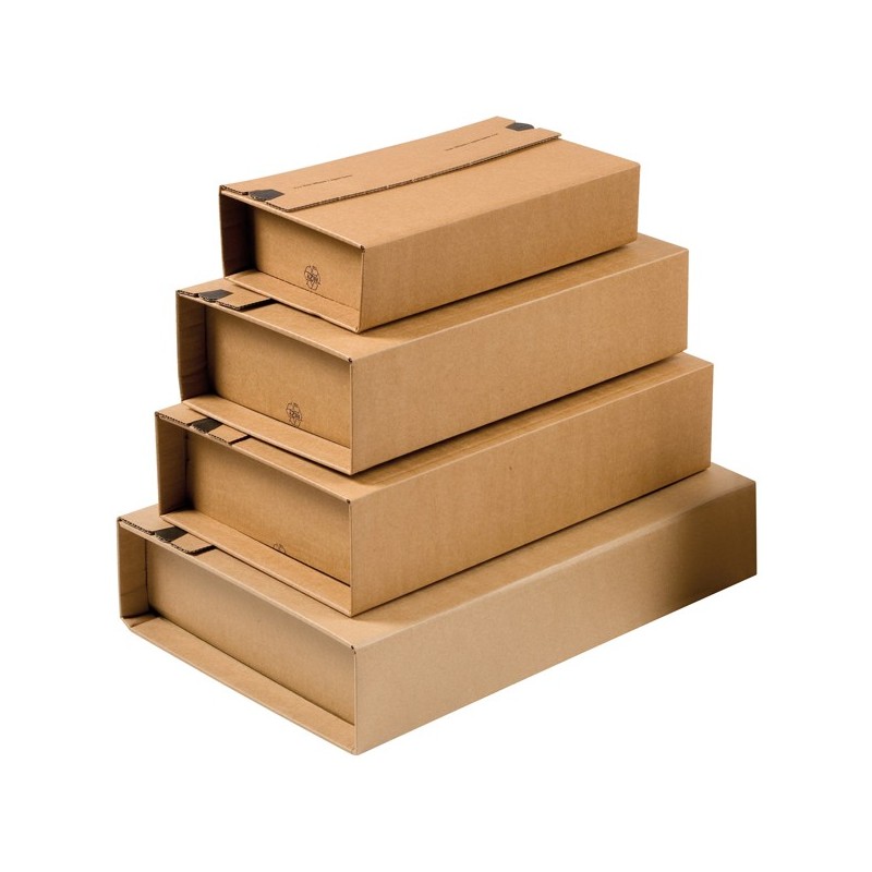 Scatole postali (fustellati) in cartone microonda avana che hanno le più varie applicazioni e sono principalmente utilizzati per effettuare spedizioni sia postali che a mezzo dei corrieri espressi. Proteggono totalmente ciò che è contenuto ed in particolare hanno dei parabordi per evitare ammaccature interne. Linguetta a strappo, bordi di sicurezza a taglio speciale. Chiusura autoadesiva. F.to interno 251x165x60. F.to est. 299x175x80mm. Adatta a contenere il f.to A5+.