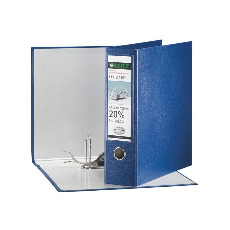 Registratore in plastica con meccanismo brevettato Leitz 180° che rende più facili e rapide le pratiche di archiviazione ed estrazione dei documenti. Rispetto ad un registratore tradizionale, l'apertura del meccanismo risulta infatti più ampia del 50% così che lo svolgimento di tali attività possa essere più veloce del 20%.