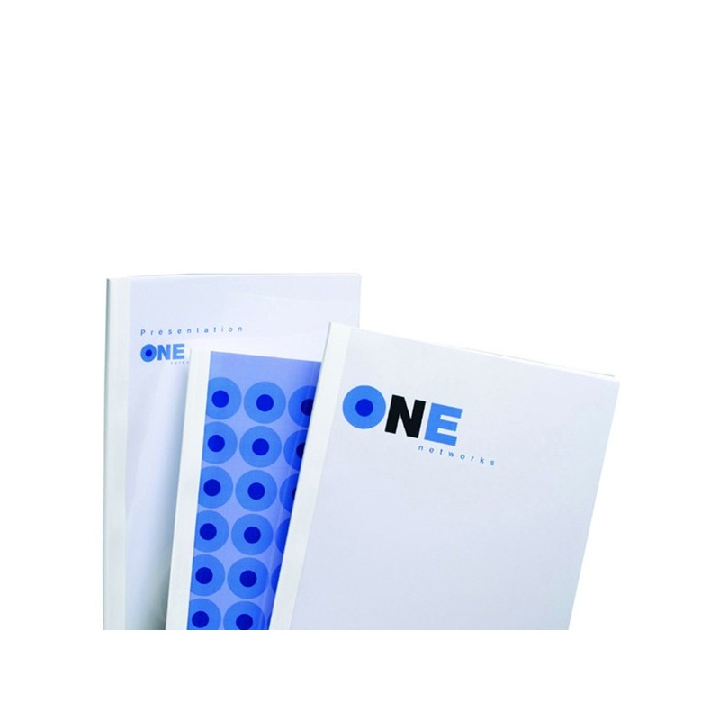 Cartelline A4 con fronte in PVC trasparente 150mic e retro in cartoncino bianco 240gr.
