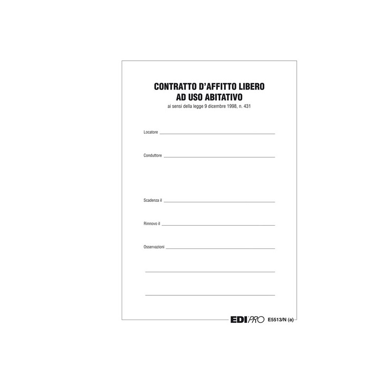 FASCICOLO CONTRATTO DI LOCAZIONE LIBERO. Formato 29,7x21cm.