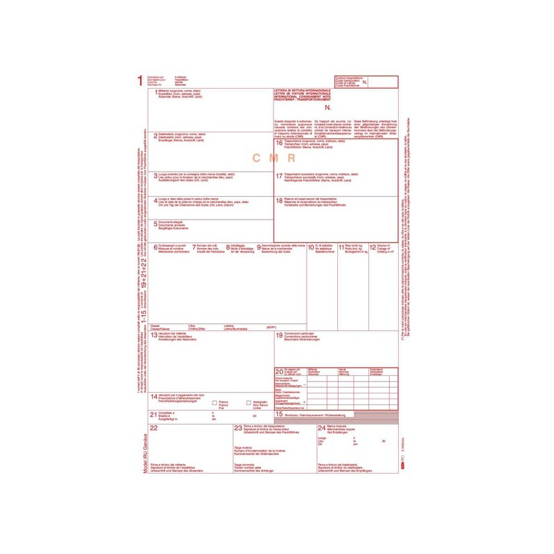 LETTERA DI VETTURA INTERNAZIONALE (MODELLO CMR) IN MODULO CONTINUO, 5 COPIE, 12POLLICI X 24CM, 100 FOGLI.