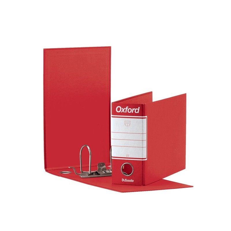 Registratore con struttura in cartone (spessore 2 mm) rivestito in carta goffrata. Rivestimento interno di colore pendant con la superficie esterna.