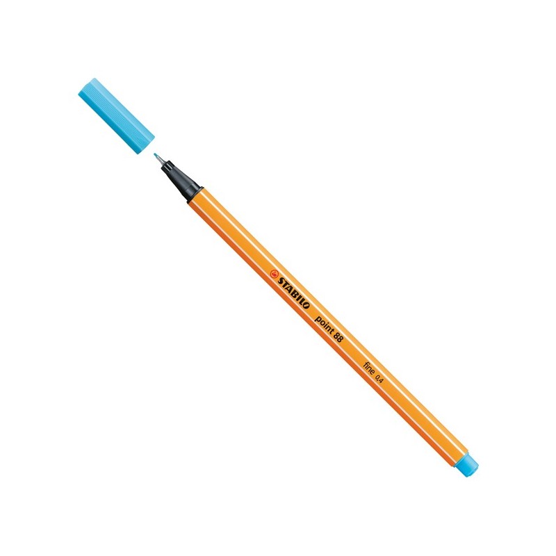 Punta in feltro con rinforzo in metallo per garantire una grande resistenza. Cappuccio ventilato antisoffocamento. Lunga durata anche senza cappuccio. Ideale per lavori con riga , fotocopie e stancils. Tratto da 0,4mm. Colore: azzurro.