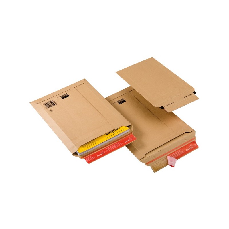 Buste a sacco completamente prodotte in cartoncino avana microonda, molto protettive ed ecologiche. Altezza del contenuto variabile fino a 5cm e bordo di sicurezza per evitare ferite - chiusura autoadesiva permanente con protezione in carta siliconata tipo peel & seal. Linguetta a strappo. F.to interno 340x500x50mm. F.to est. 353x518. Adatta a contenere il f.to A3.