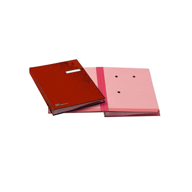 Libri firma in robusta copertina in cartone rivestita in dermoide. 18 intercalari in resistente cartoncino assorbente accoppiato con portaetichetta. Dorso a soffietto rinforzato in imitlin. Formato utile 24x34cm.