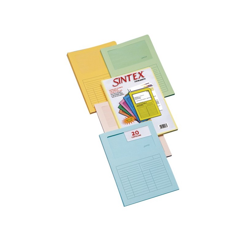 Cartelline aperte su 2 lati a L con finestra trasparente Sintex in cartoncino da 120gr. Formato utile 22x31cm
