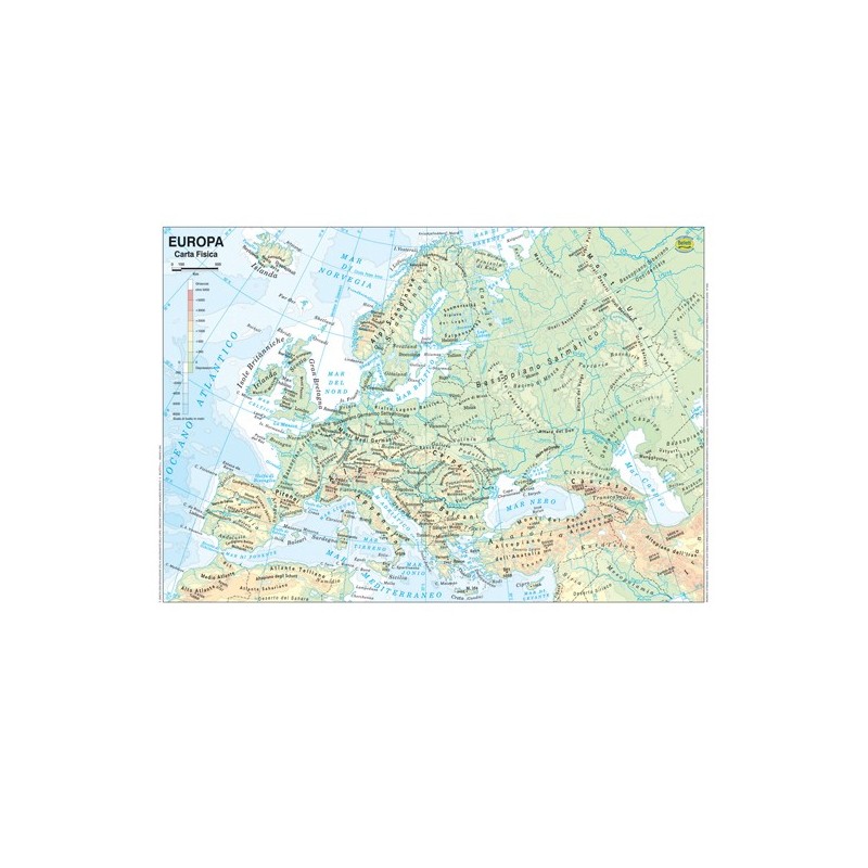 Cartina scolastica del europa formato a3 (29,7x42cm) plastificata. Un lato cartina fisica, un lato cartina politica
