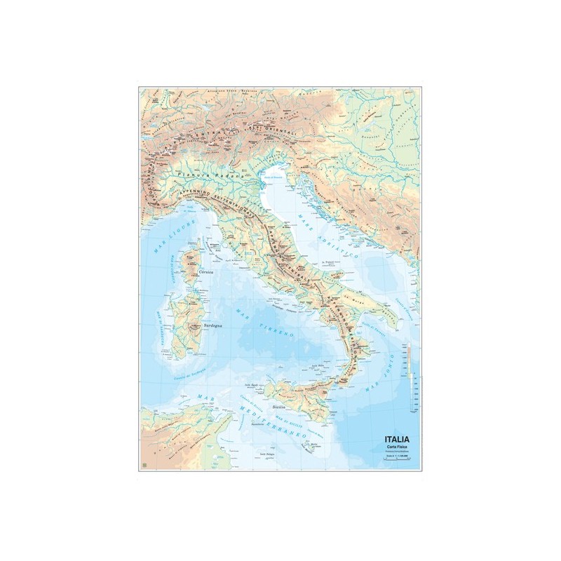 Cartina scolastica murale fisico/politica. plastificazione antiriflesso . Aste di supporto in plastica. Scala 1:1.125.000. f.to 97x134cm