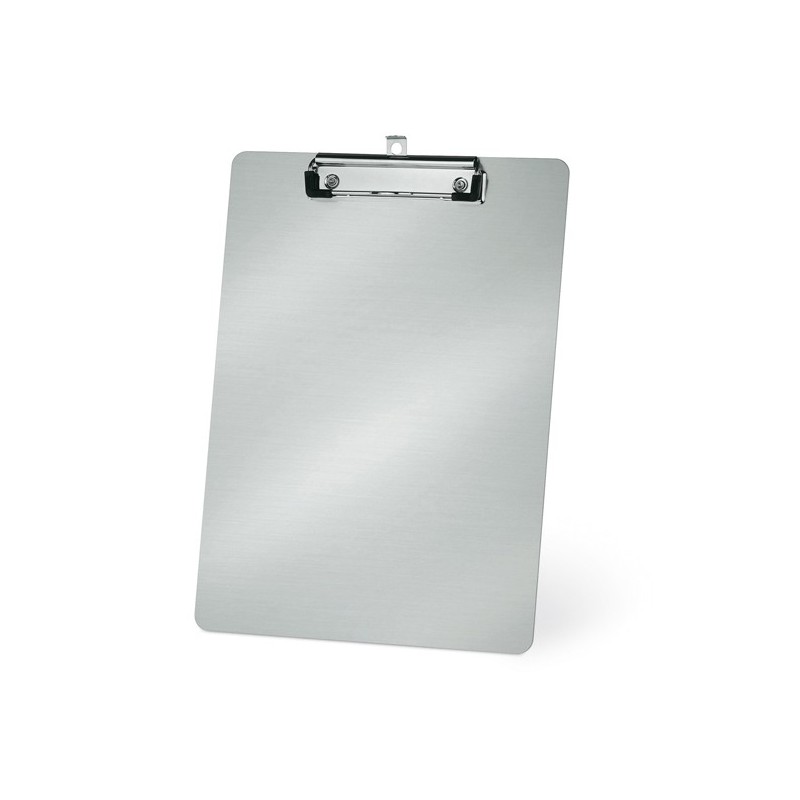 Tabella portablocco in alluminio con bloccafogli in metallo e gancio per appendere F.to interno 23x31,5cm.