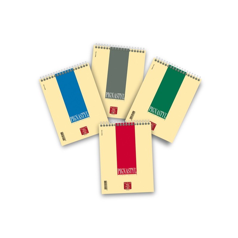 Blocco spiralato sul lato corto. Copertina goffrata da 200gr. Cartone di fondo pesante da 600gr. Formato A5-15x21cm. Rigatura 1 rigo. 60 fogli da 80 gr.