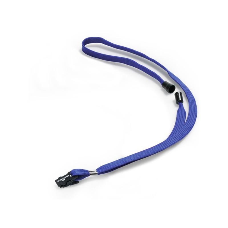 Cordoncino in tessuto larghezza 10mm con chiusura di sicurezza e clip finale a pinza per l'aggancio a portabadge. lLunghezza 44 cm. Adatto al pass di sicurezza 8118 e tutti i badge durable dotati di asola di aggancio.