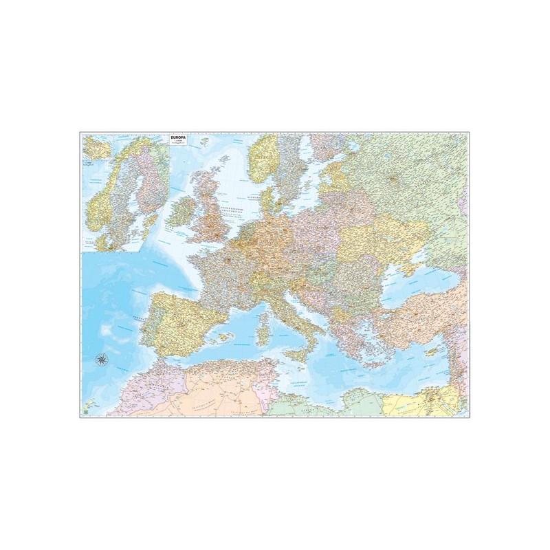 Cartina murale amministrativa/stradale. Plastificazione antiriflesso. Aste di supporto in legno naturale. Scala 1:3.750.000 dimensioni 131x97cm.
