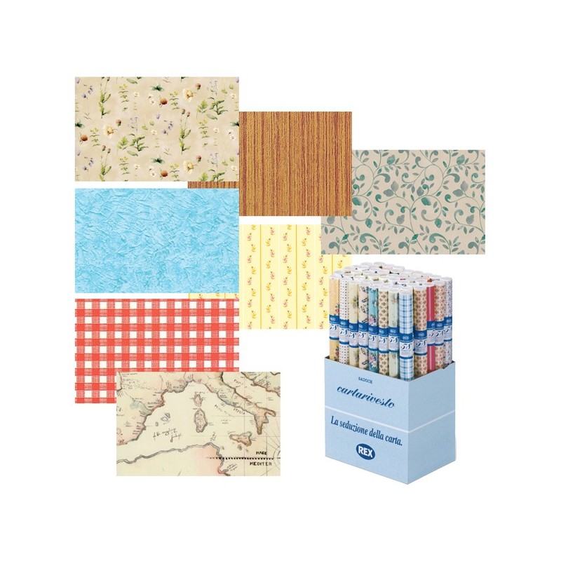 Rotolo in carta autoadesiva da 90gr da rivestimento altamente resistente e lavabile. Dimensioni H49cm x 3 metri.