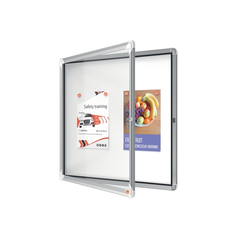 AD ANTA BATTENTE. NUOVO DESIGN CON ROBUSTA CORNICE IN ALLUMINIO E VETRO DI SICUREZZA DI 4MM. FONDO IN ACCIAIO BIANCO MAGNETICO PER USO CON MAGNETINI O SCRIVIBILE CON PENNARELLI A SECCO. FISSAGGIO SEMPLICE EFFETTUABILE DA UNA SOLA PERSONA. SERRATURA CON 2 CHIAVI. APERTURA ISTALLABILE SIA A DESTRA CHE A SINISTRA. F.TO 6XA4: DIM.EST. 69,2X75,2X3,7cm.