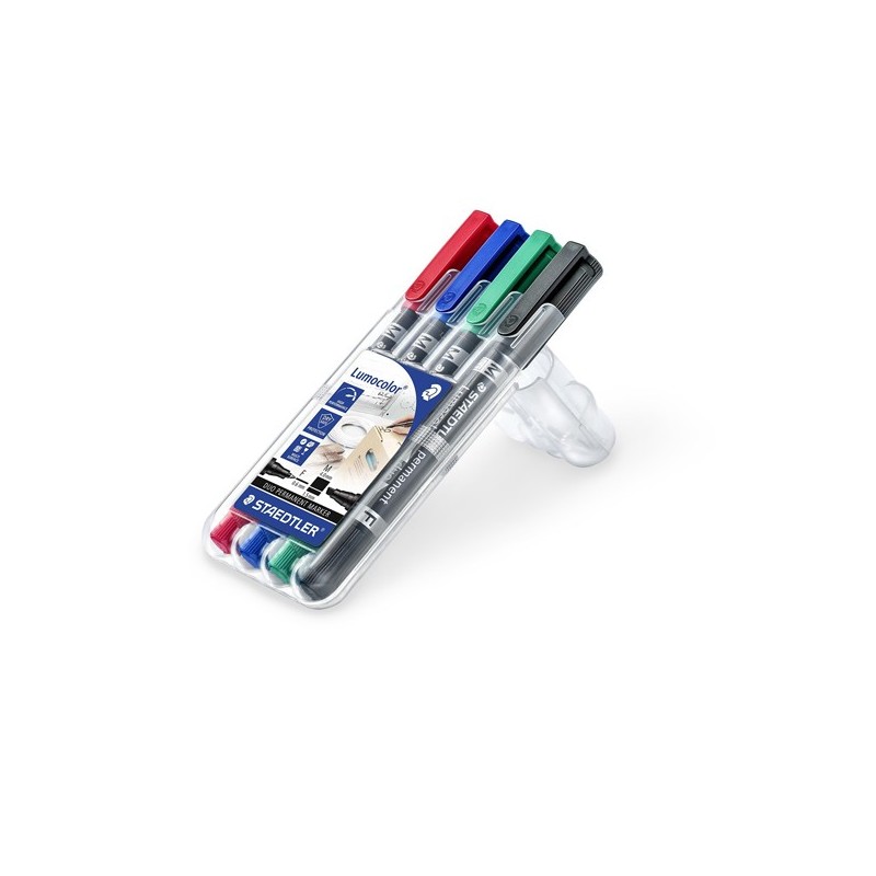 LUMOCOLOR PERMANENT DUO 348. Pennarello con doppia punta in fibra: da 0,6mm e da 1,5mm. Inchiostro a base d’alcool senza xylolo e toluolo. Airplane-safe. Brevettato DrySafe (non secca se lasciato per alcune ore senza cappuccio). Ricaricabile con riattivatore 488-88.