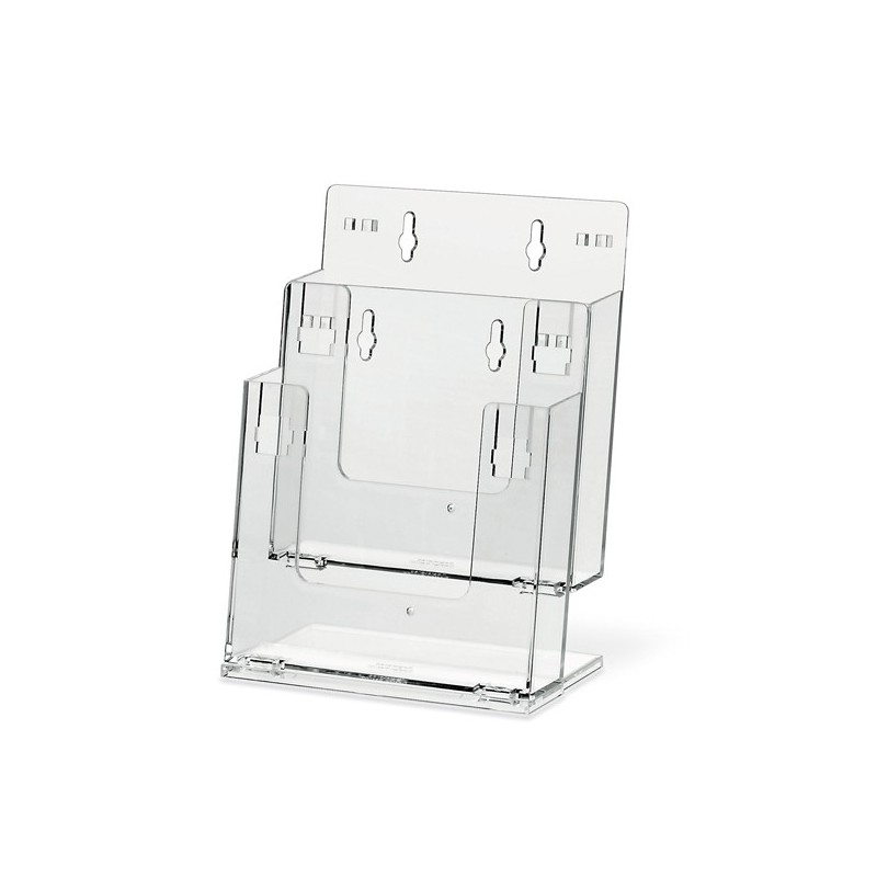 Portadepliant in polistirene trasparente componibili, da banco e da parete. Formato: 16,5x22cm. ProfonditÓ 7cm. A 2 tasche