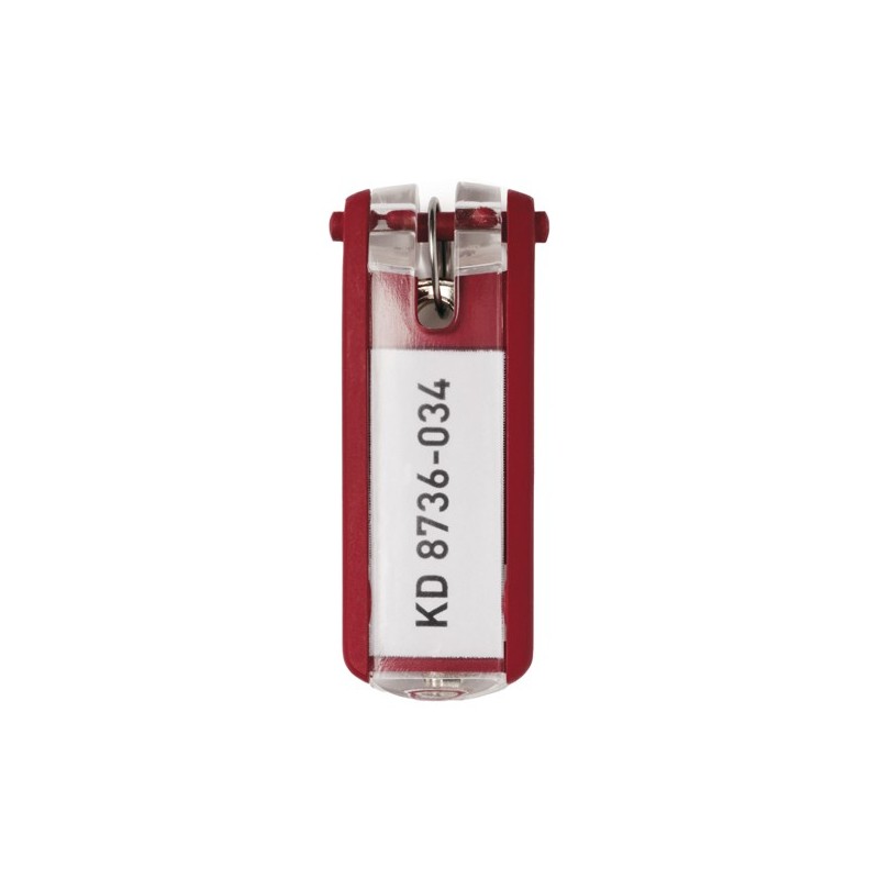 Portachiave innovativo che rivoluziona l'organizzazione della cassette portachiavi KEY BOX. L'esclusivo design è studiato per mostrare l'etichetta sempre in posizione frontale mantenendo nascosta la chiave e assicurandone l'immediata identificazione. L'inserimento dell'etichetta è facilitato dalla pratica apertura a scatto. Template per la personalizzazione degli inserti sono scaricabili gratuitamente dal sito www.durable.it. Confezione da 6 pezzi.Dimensioni singolo portachiave: 6,8x2,4x spessore 1,5cm.