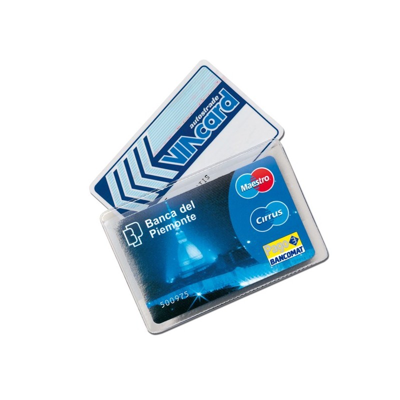 Cristalcard portacard in PVC cristal, spessore 0,25mm a 2 scomparti per contenere 2 tessere. Dimensioni: 9,7x6,3cm. Confezione da100 pezzi.