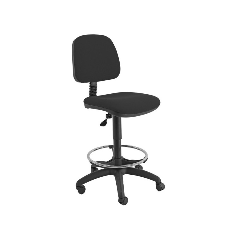 Seduta alta in faggio multistrato con rivestimento esterno 100% PPL. Schienale medio e poggiapiedi regolabile. Meccanismo a contatto permanente. Elevazione a gas. Base in poliammide con ruote.