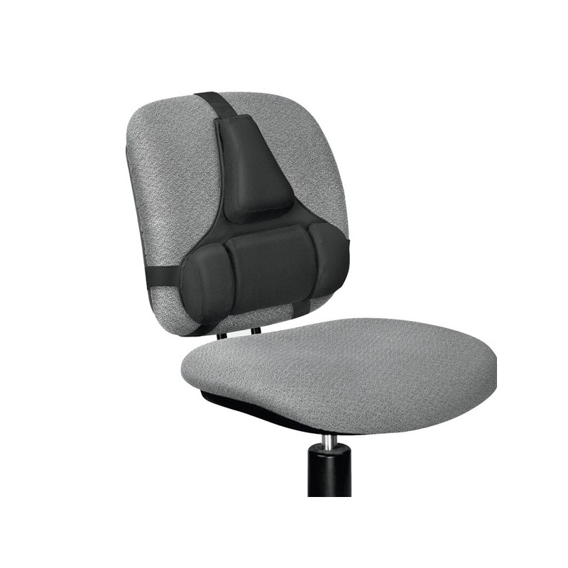 Supporto lombare con tre sezioni di cuscini ergonomici in schiuma che sostengono la schiena in modo naturale. Facilmente adattabile alla maggior parte delle sedie, alta stabilità conferita dal fissaggio a tre fibbie, sfoderabile e lavabile. Dotato di protezione antimicrobica Microban che evita la proliferazione di batteri dannosi. Formato: 5x35x38cm.
