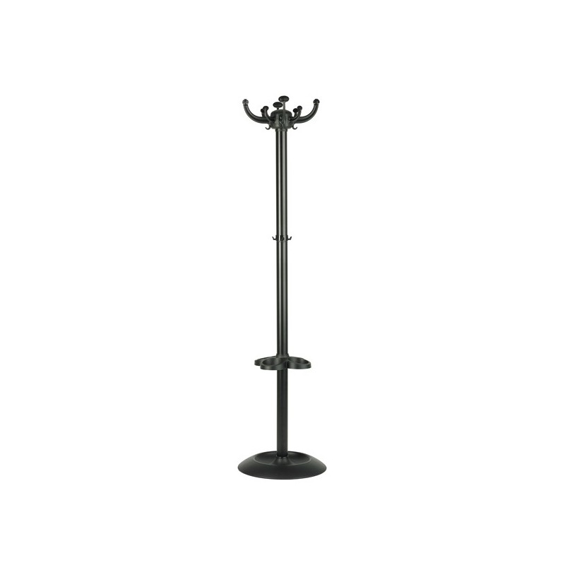 Appendiabiti da terra con stelo in metallo e in plastica. Dotato di 8 supporti in plastica e testa girevole. Dimensioni: 168x40cm