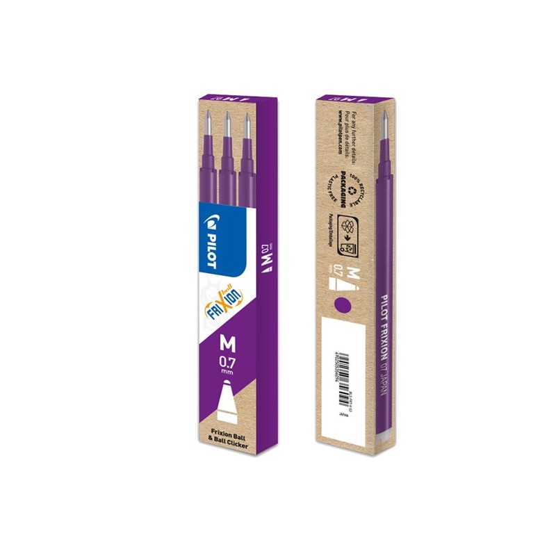 Set 3 Refill per FRIXION ball e clicker. Punta 0,7mm. Colore: viola.