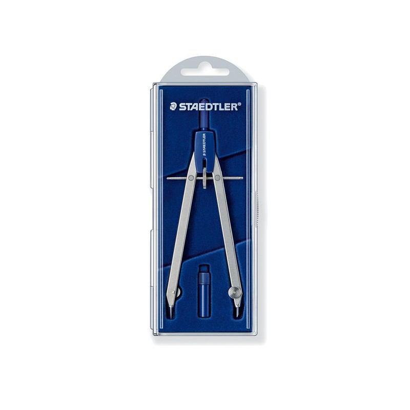 Compasso in ottone nichelato ad aste fisse con regolazione tramite vite centrale. Diametro massimo 270mm. Tubetto di mine di ricambio incluso nella confezione.