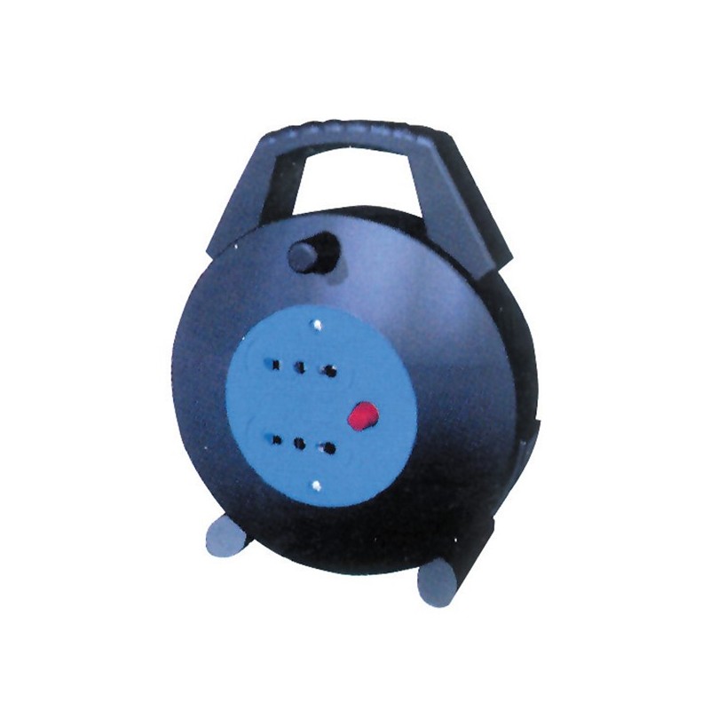 Prolunga elettrica in avvolgicavo. Cavo: 3x1,5 mm¦, lunghezza 5 m. Spina da 16 A con protezione da sovraccarico. 2 prese bipasso 2P+T 10/16 A. Carico massimo 3600 W.