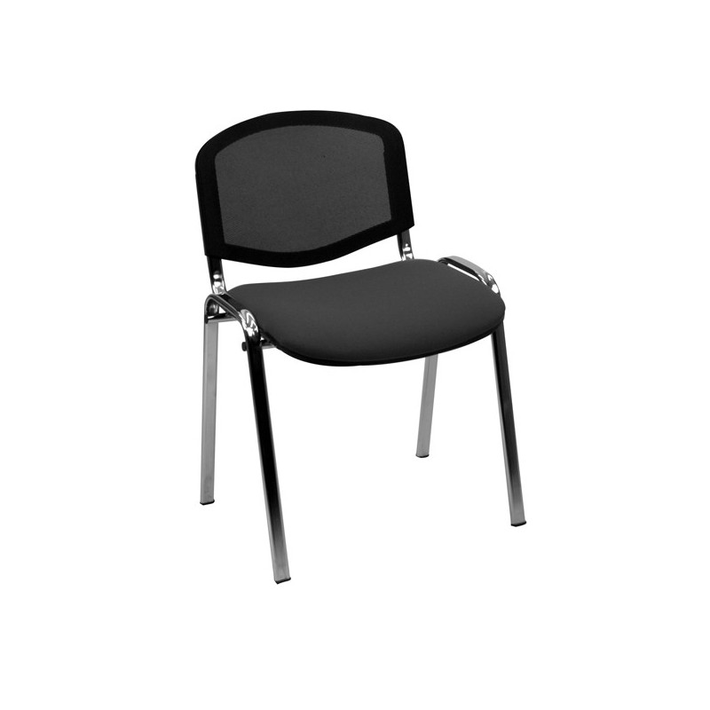 seduta meeting con struttura in tubo d'acciaio cromato e schienale in rete portante. sedile con rivestimento acrilico 100%. braccioli opzionali.
