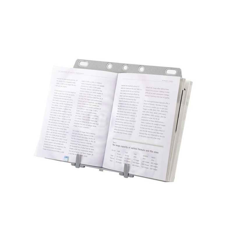 Leggio Book-lift progettato per sorreggere libri e manuali. Utilizzabile con libri e documenti nel formato A4. Colore silver. Dimensioni: 24,4x29,6x13cm.
