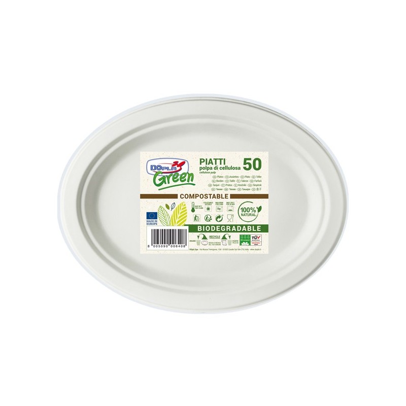 PIATTI REALIZZATI IN POLPA DI CELLULOSA, COMPOSTABILI E 100% BIODEGRADABILI. IDONEI AD ESSERE USATI IN MICROONDE (max 800W per 2').