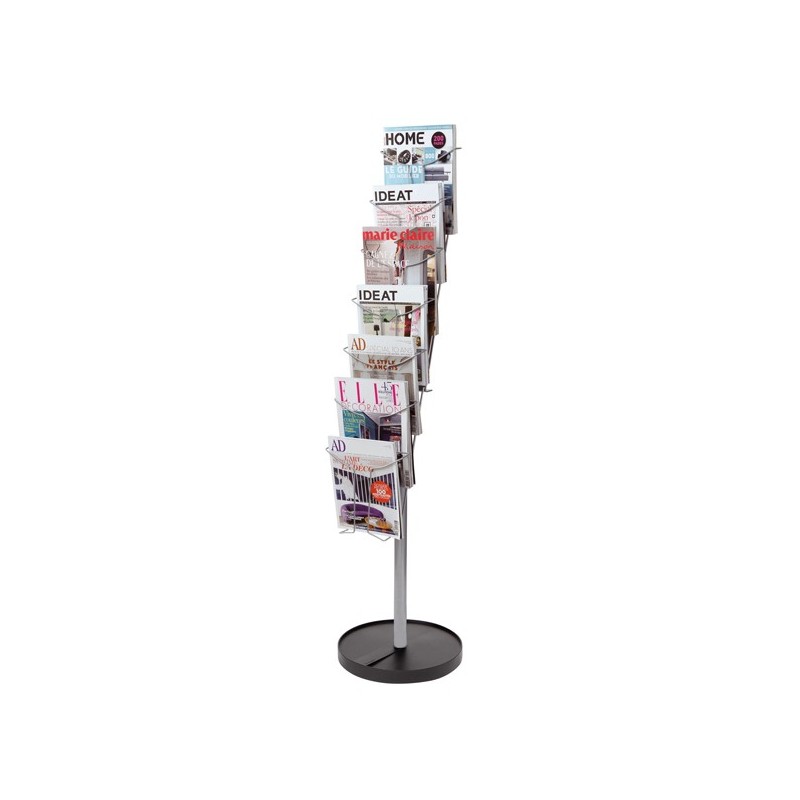 ESPOSITORE IN FILO METALLICO GRIGIO, OTTIMA ALTERNATIVA AI PRODOTTI IN PLASTICA. STRUTTURA MOLTO ROBUSTA E LEGGERA. DIMENSIONE Ø 35CM X H 150CM - 7 TASCHE A4.
